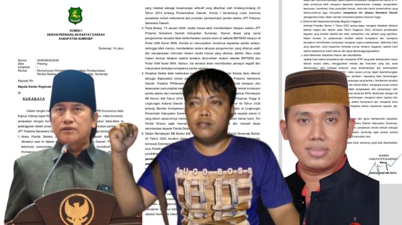 Kemelut publik menguat setelah Ketua Komisi I DPRD Sumenep, Darul Hasyim, mengirimkan surat resmi ke Badan Kepegawaian Negara (BKN) Regional II Surabaya terkait proses seleksi Sekda. Langkah ini sontak memantik perdebatan serius, karena dinilai tidak melalui mekanisme kelembagaan DPRD sebagaimana diatur dalam Tata Tertib (Tatib).