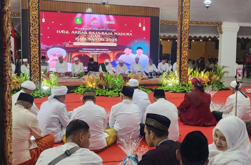 SUMENEP, 27 Oktober 2025 — Semarak religius dan kebersamaan lintas elemen masyarakat mewarnai Haul Akbar Raja-Raja Madura yang digelar khidmat di Pendopo Agung Sumenep, Senin malam (27/10/2025). Kegiatan ini menjadi bagian penting dari rangkaian Hari Jadi Kabupaten Sumenep ke-756 sekaligus memperingati Hari Santri Nasional 2025.